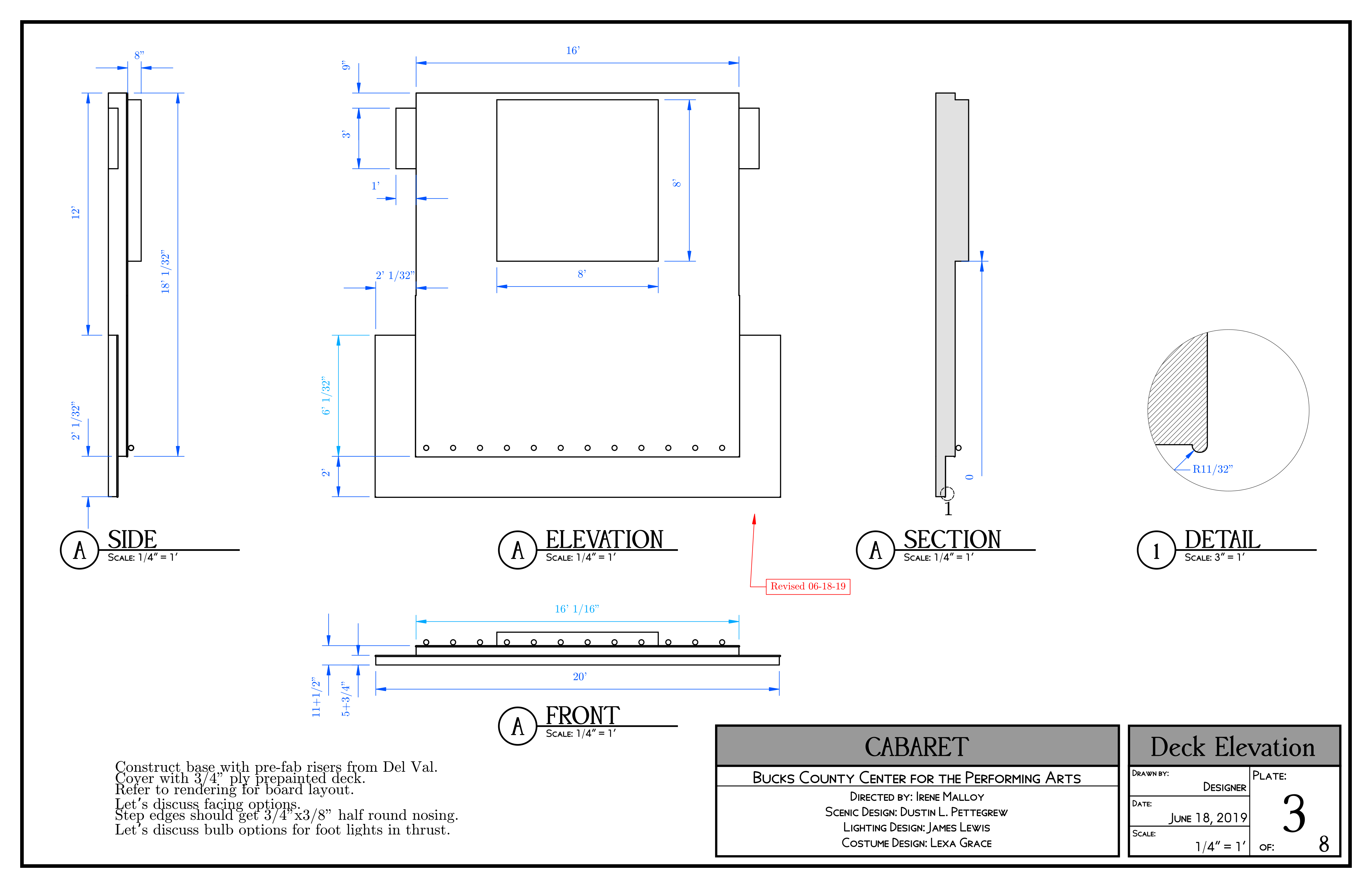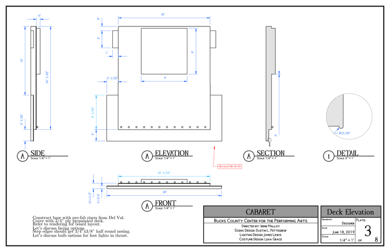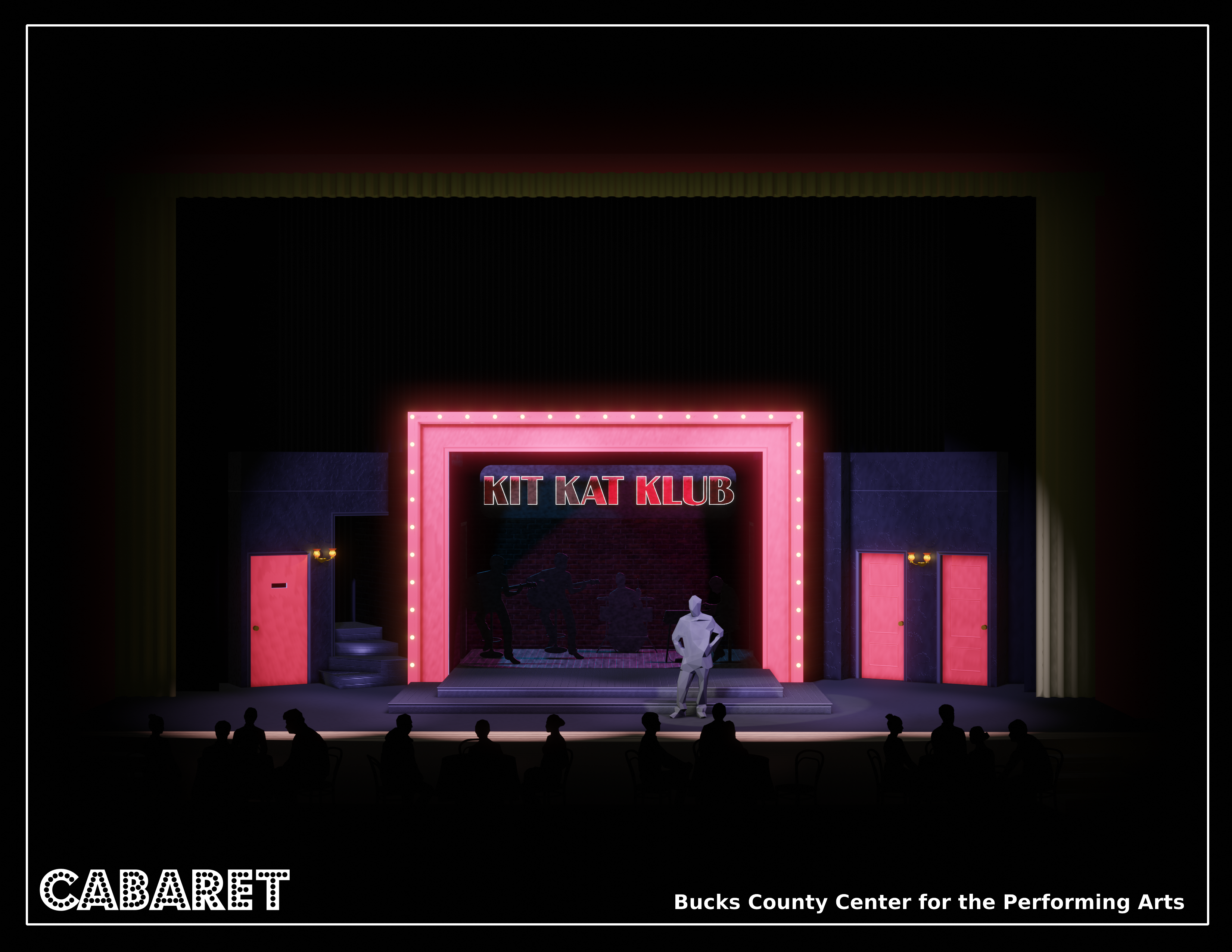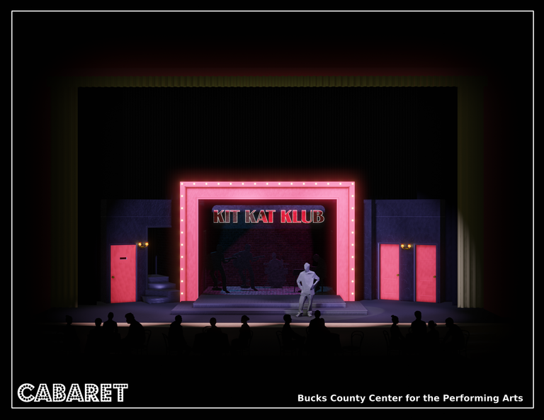 CabaretBucks County Center for the Performing ArtsBook by: Joe MasteroffMusic by: John Kander Lyrics by: Fred EbbDirected by: Irene MalloyModel and Rendering with Blender 3D3D CAD Drafting packet with FreeCADDigital painter's elevations with Krita